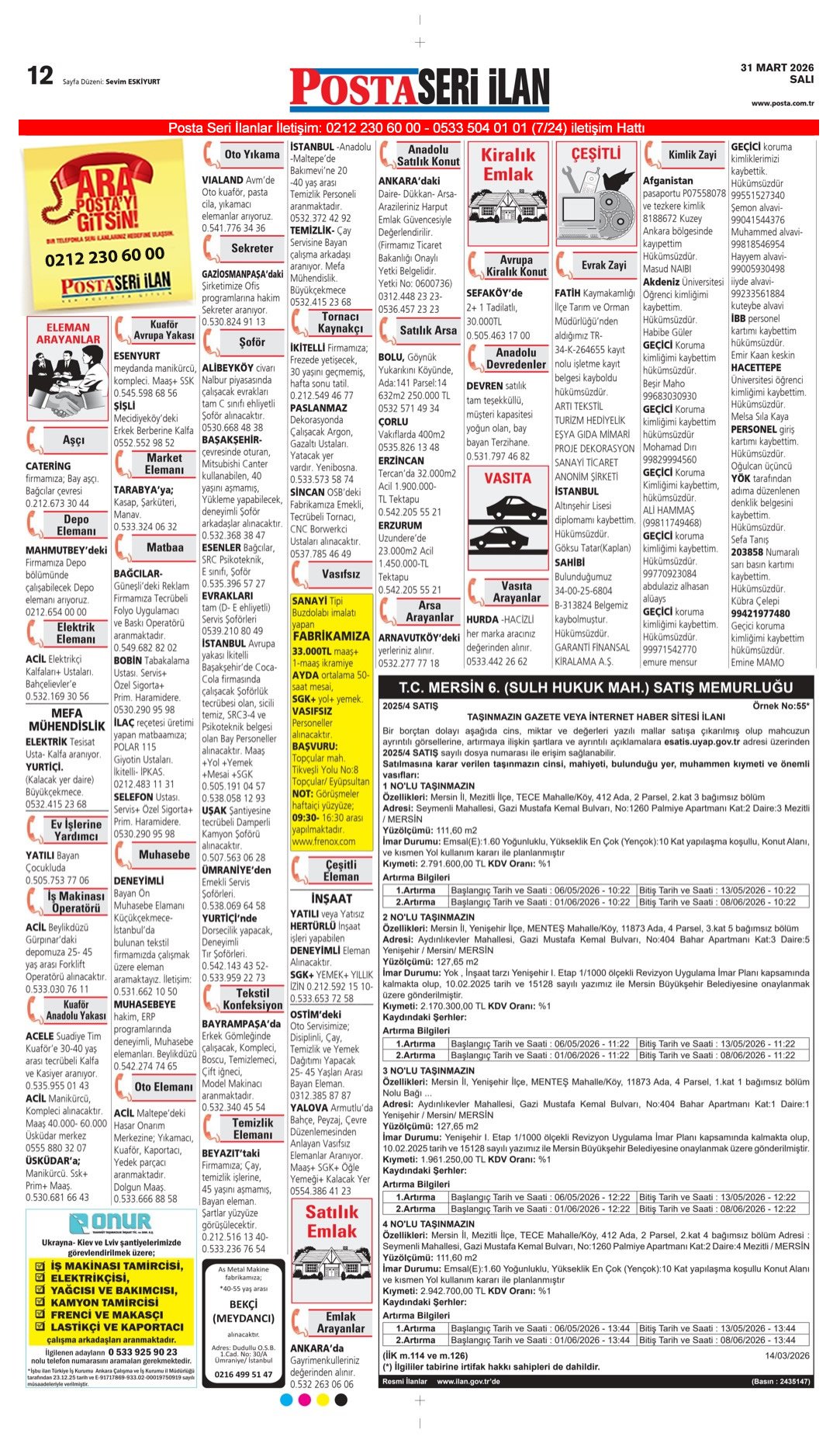 31 Mart 2026 Posta Bugünkü İş İlanları, Posta Eleman, Posta Kayıp İlanı, Posta Seri İlanlar.
