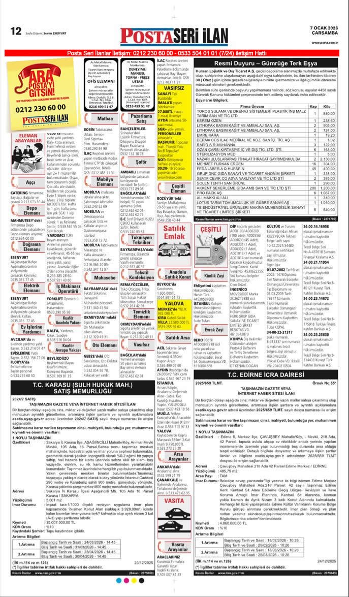 Posta Bugünkü İş İlanları, Posta Eleman, Posta Kayıp İlanı-7.1.2026