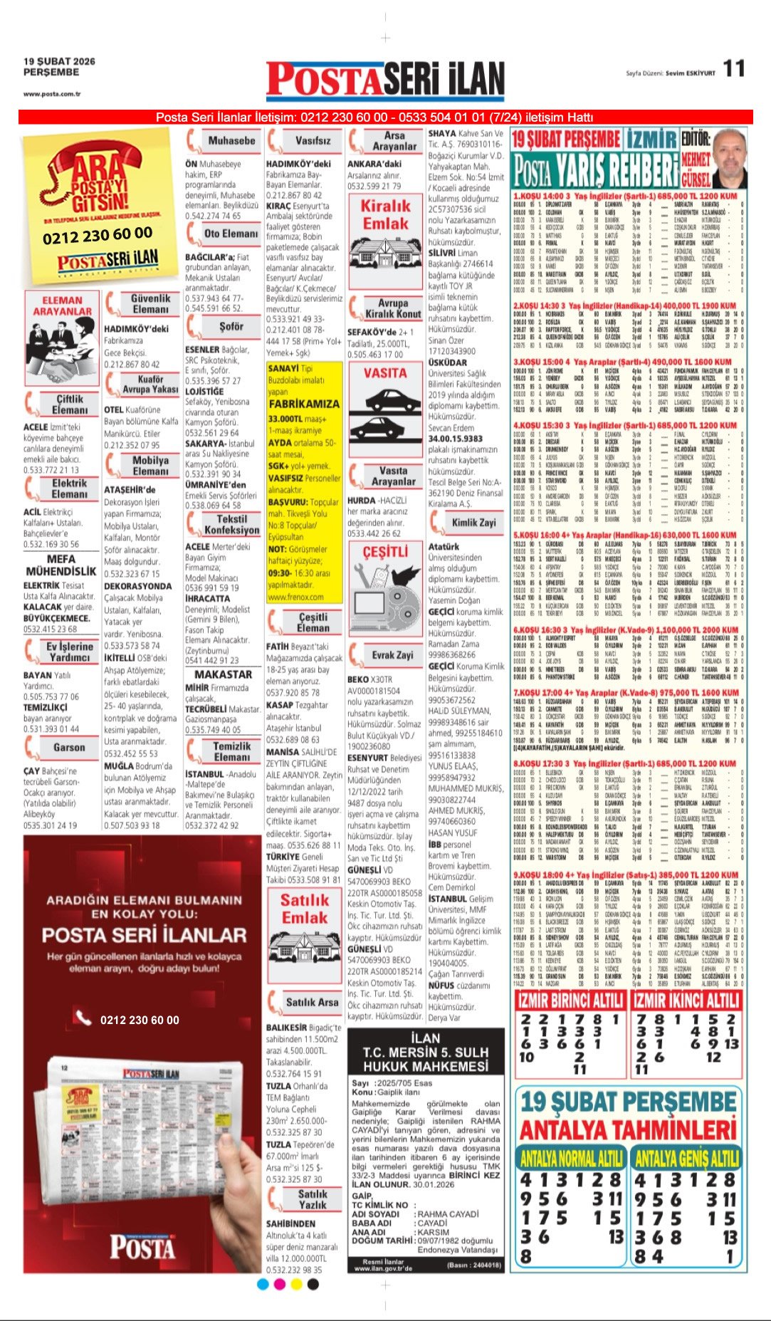 Posta Bugünkü İş İlanları, Posta Eleman, Posta Kayıp İlanı, Posta Seri İlanlar-19.2.2026