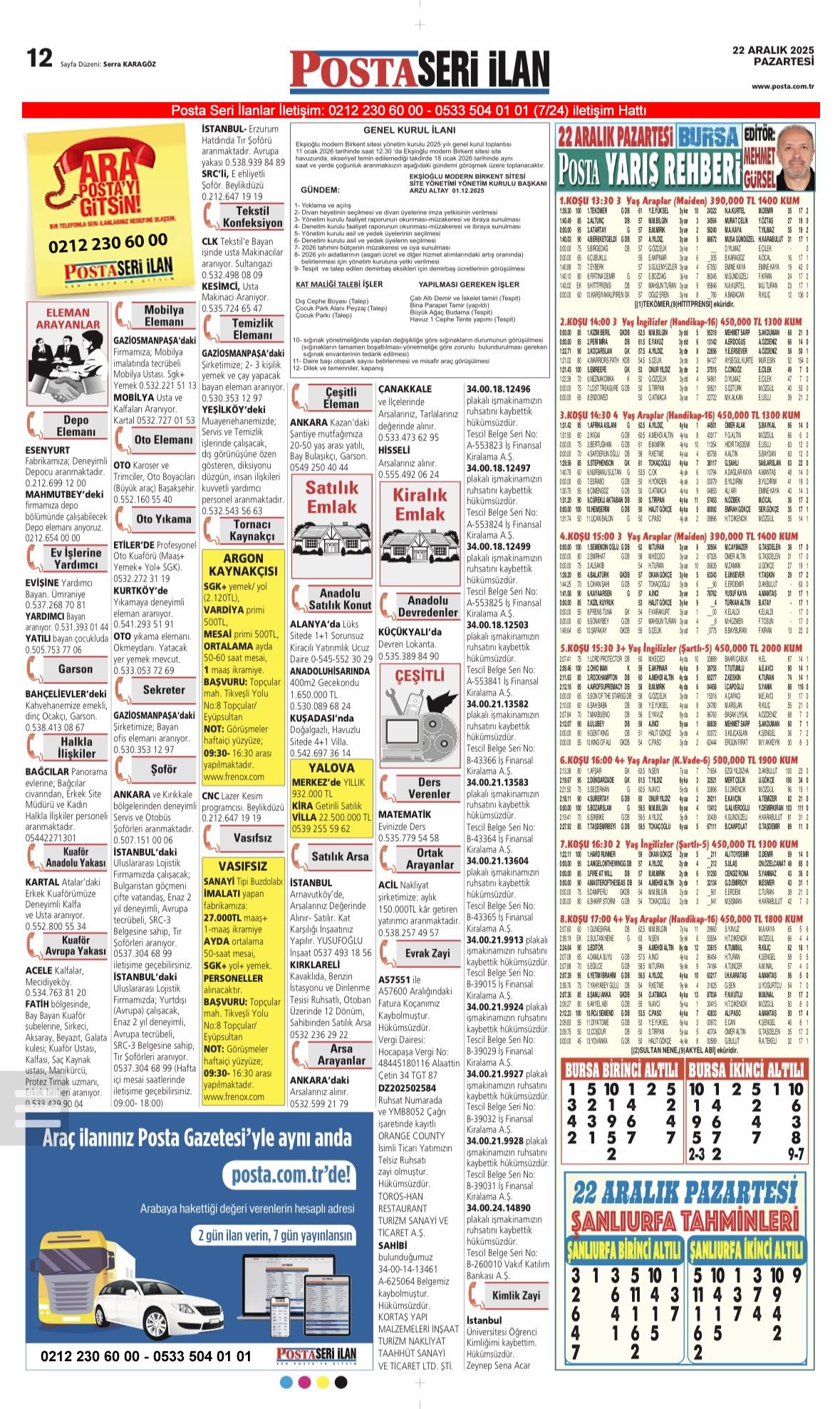 Posta Bugünkü İş İlanları, Posta Eleman, Posta Kayıp İlanı-22.12.2025