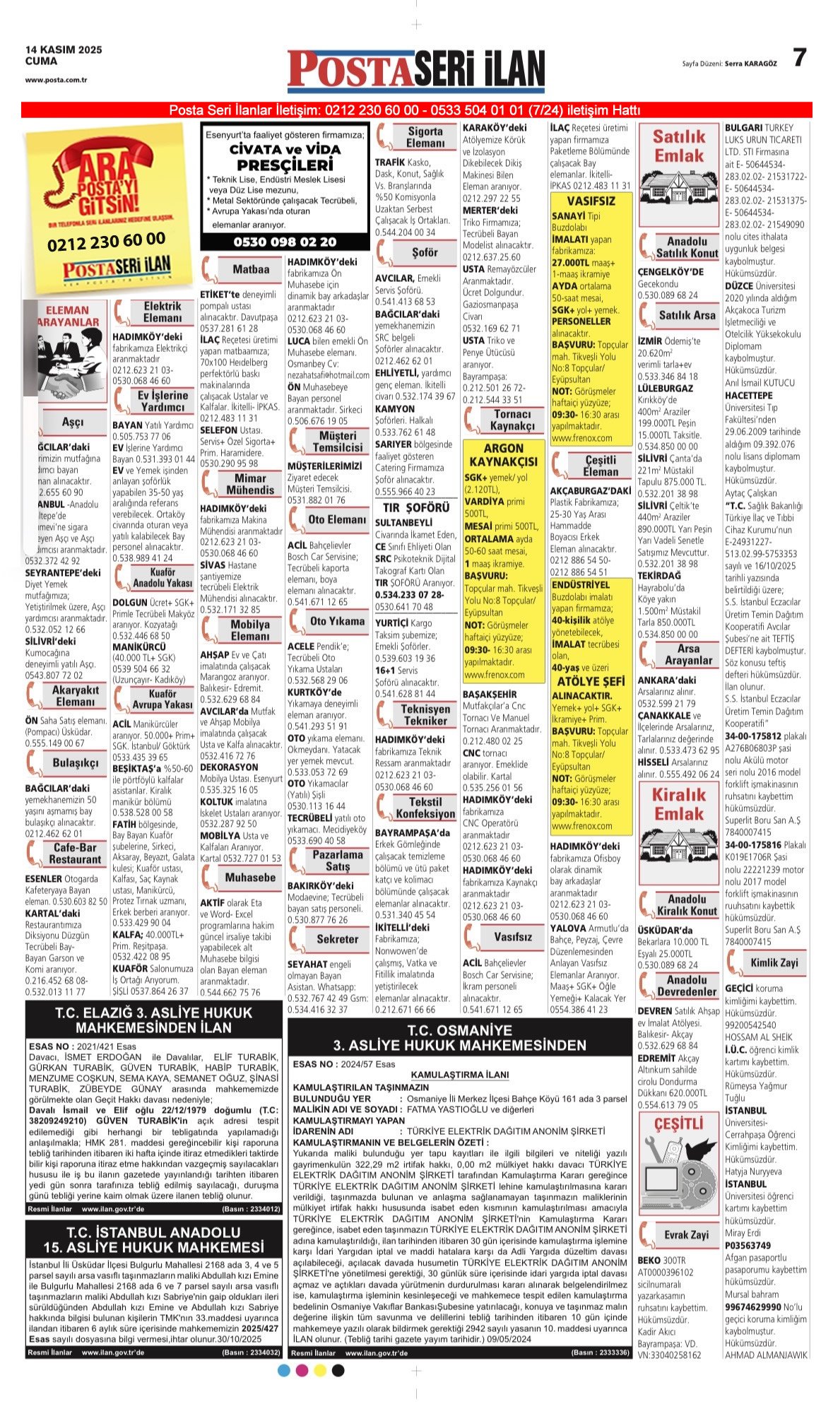 Posta Bugünkü İş İlanları, Posta Eleman, Posta Kayıp İlanı-14.11.2025