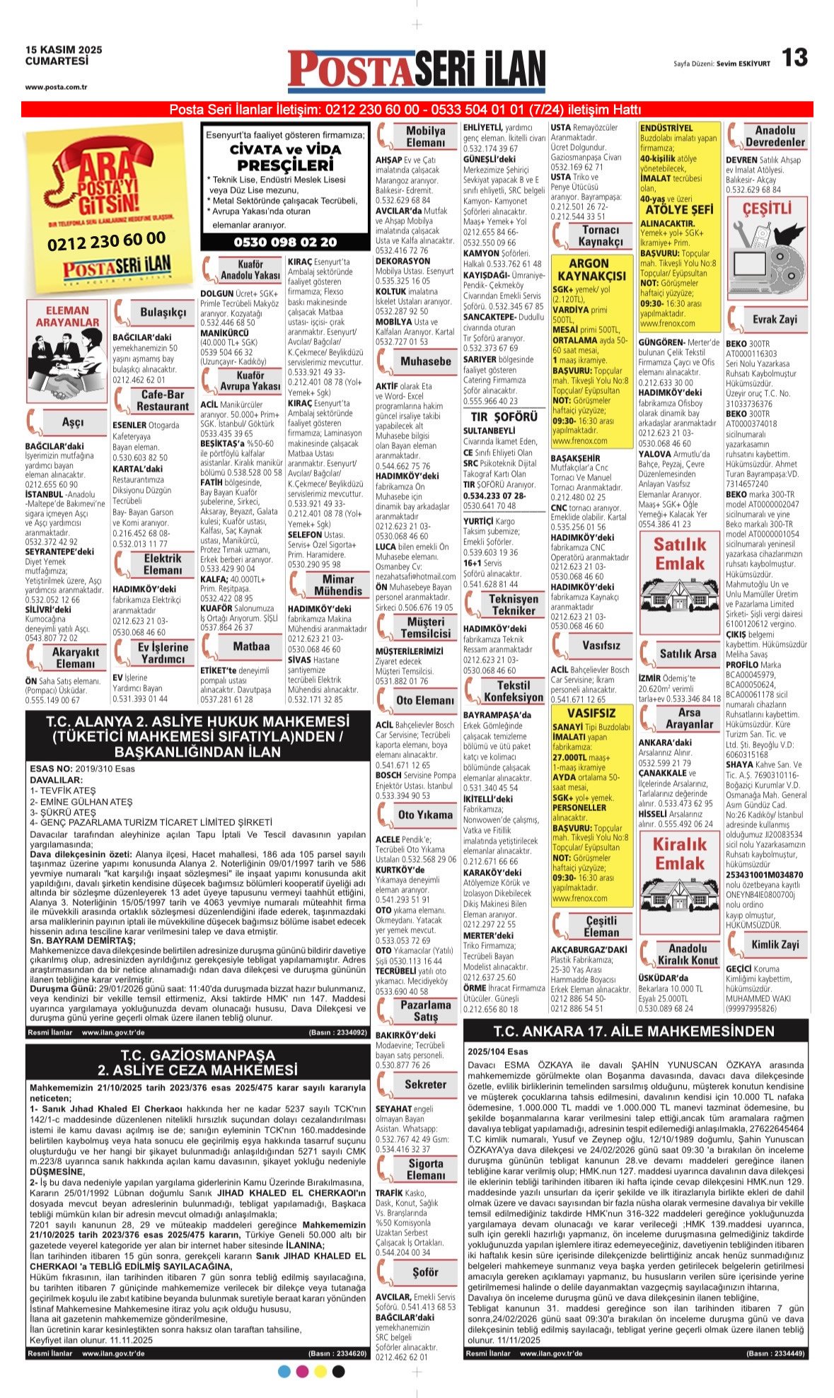Posta Bugünkü İş İlanları, Posta Eleman, Posta Kayıp İlanı-13.11.2025