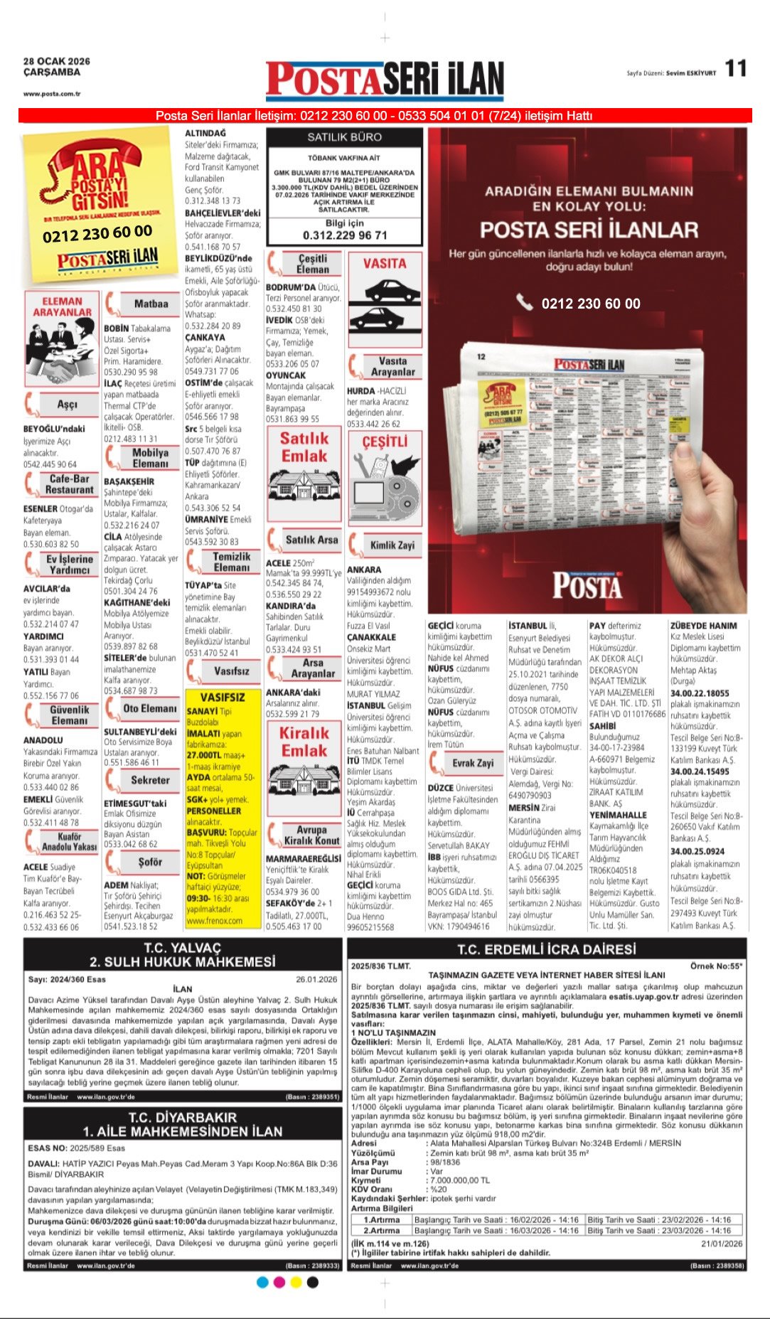 POSTA GAZETESİ SERİ İLAN SERVİSİ | www.seriilanposta.com | 0212 230 60 00 - 0533 504 01 01 (7/24) İlan Hattı