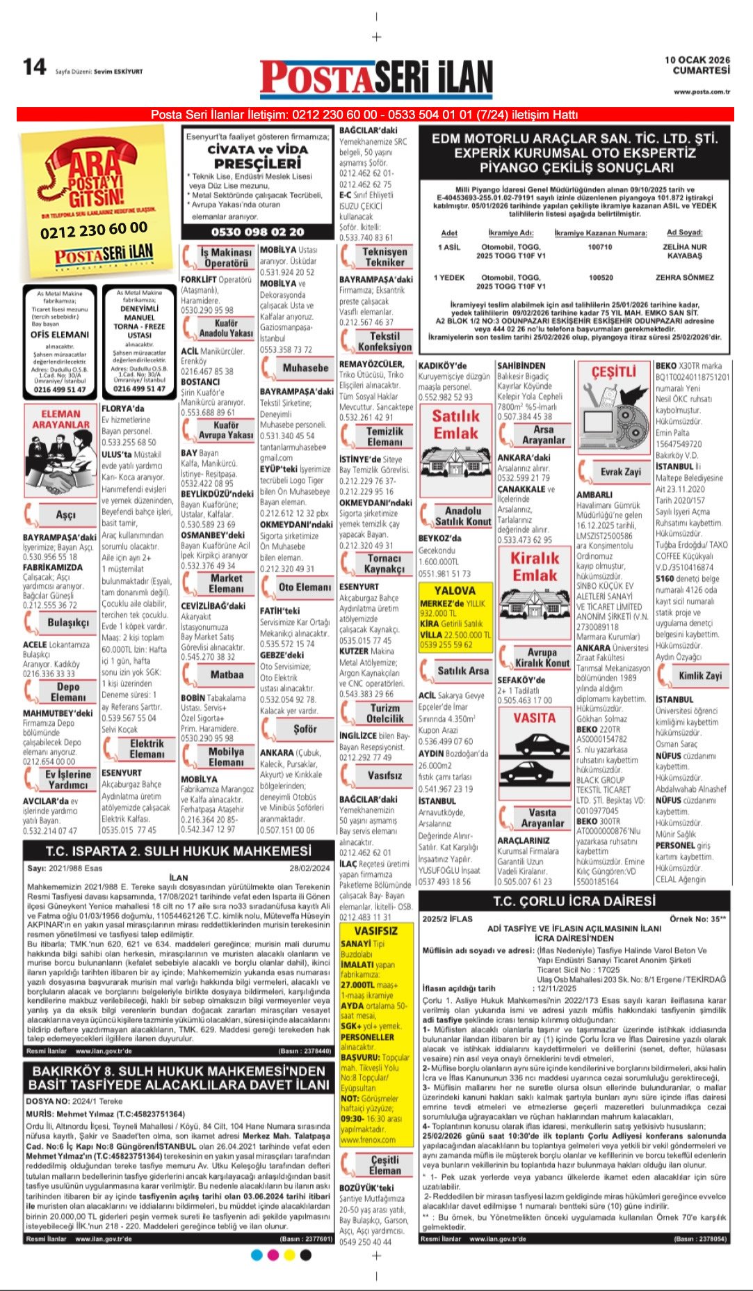Posta Bugünkü İş İlanları, Posta Eleman, Posta Kayıp İlanı-10.1.2026