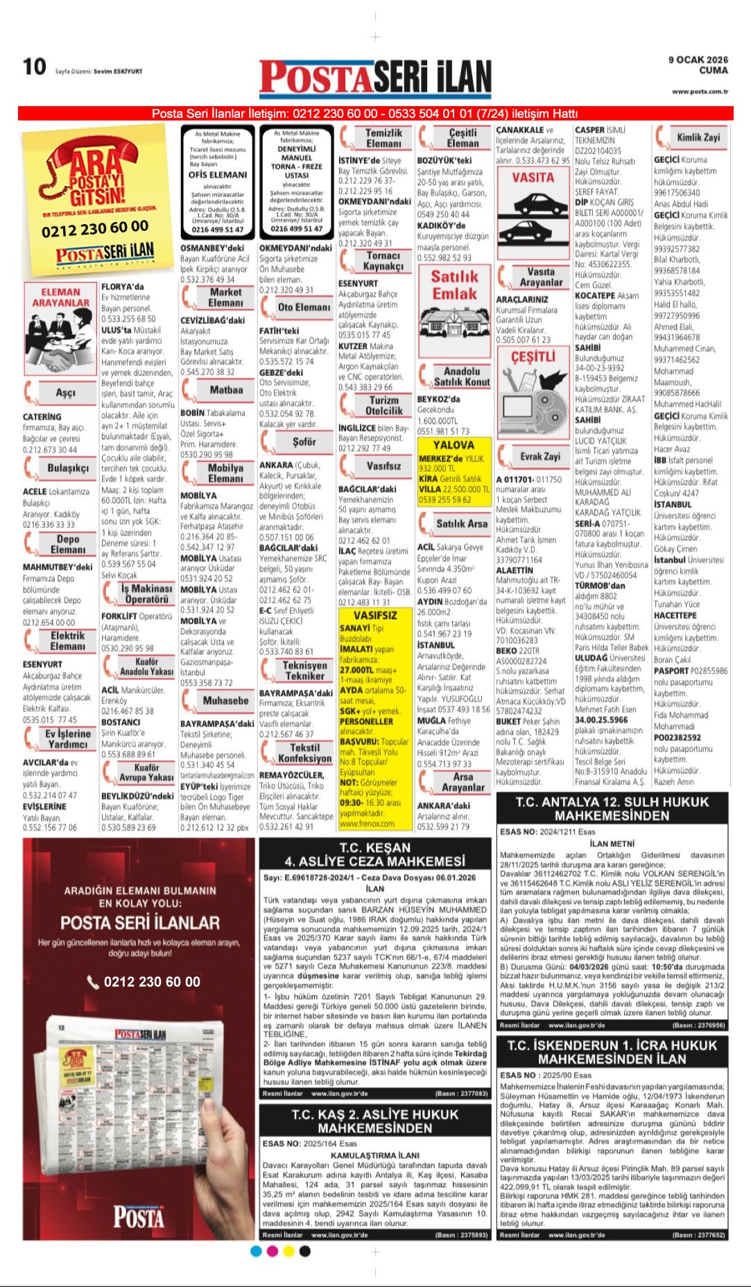 Posta Bugünkü İş İlanları, Posta Eleman, Posta Kayıp İlanı-9.1.2026