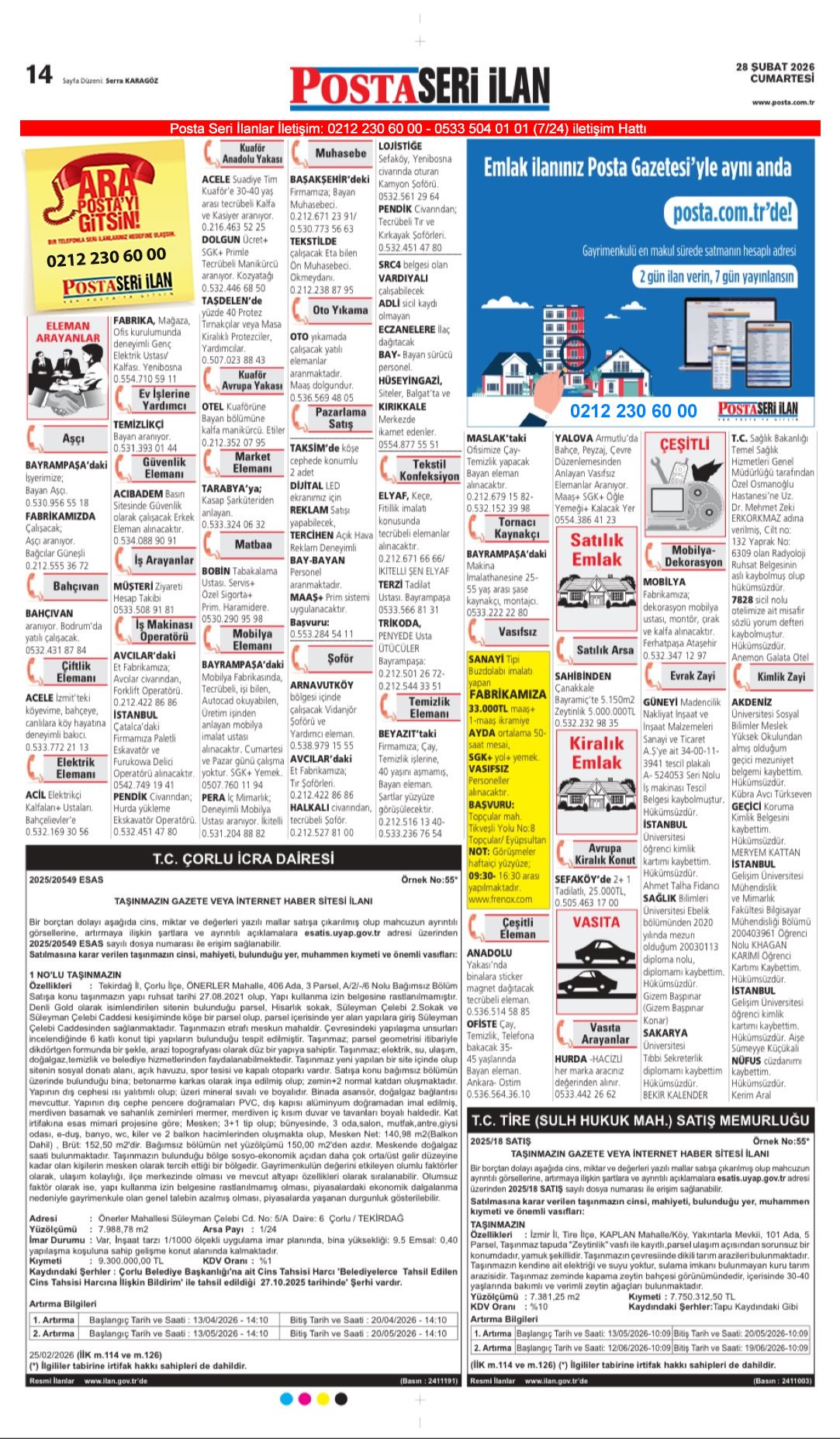 Posta Bugünkü İş İlanları, Posta Eleman, Posta Kayıp İlanı, Posta Seri İlanlar-28.2.2026
