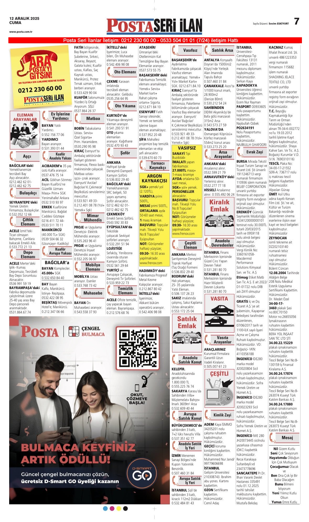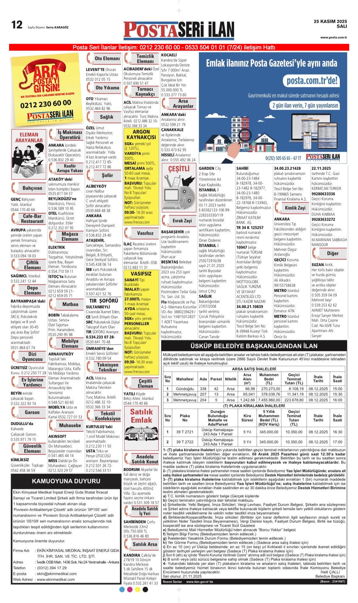 Posta Bugünkü İş İlanları, Posta Eleman, Posta Kayıp İlanı-12.12.2025