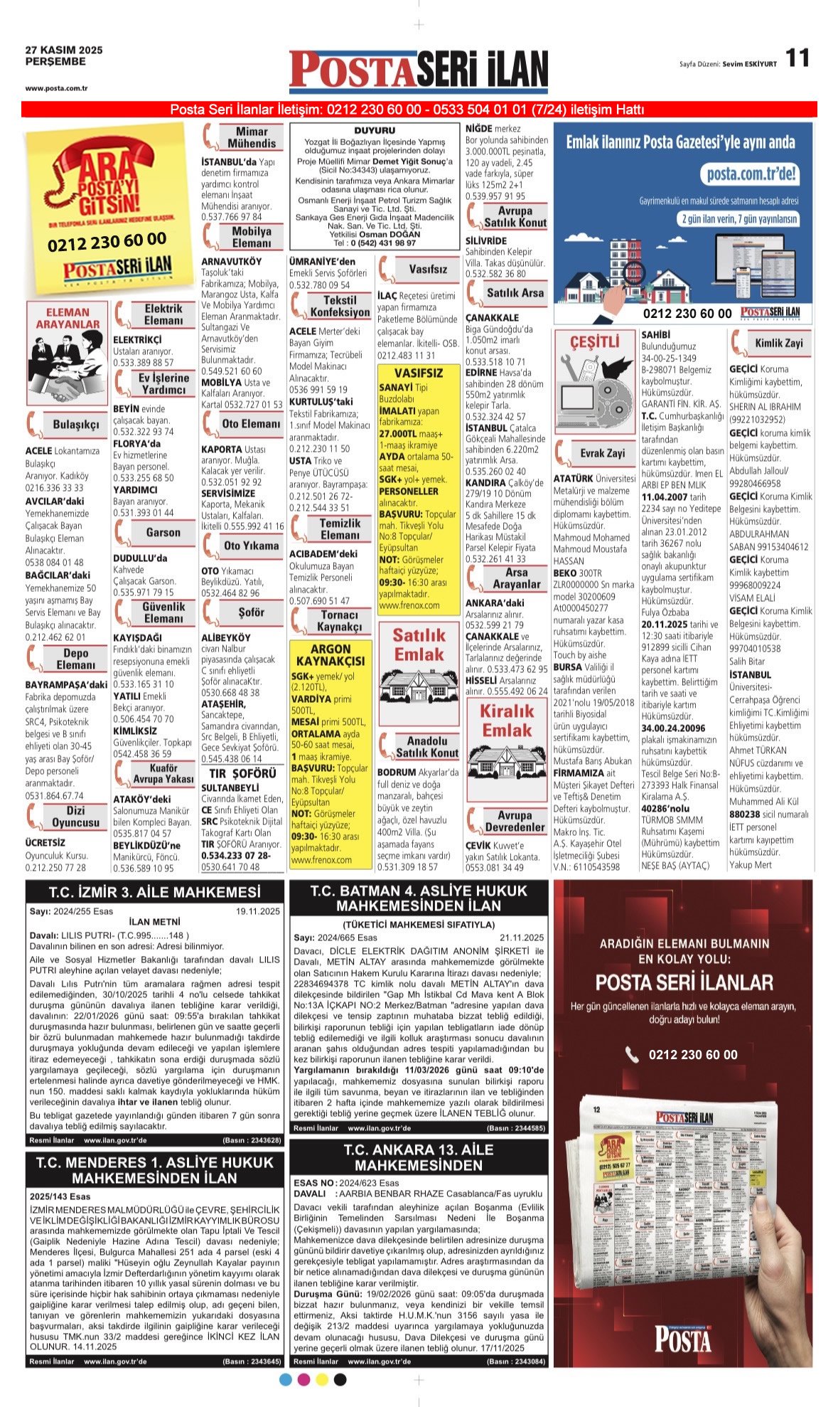 Posta Bugünkü İş İlanları, Posta Eleman, Posta Kayıp İlanı-27.11.2025