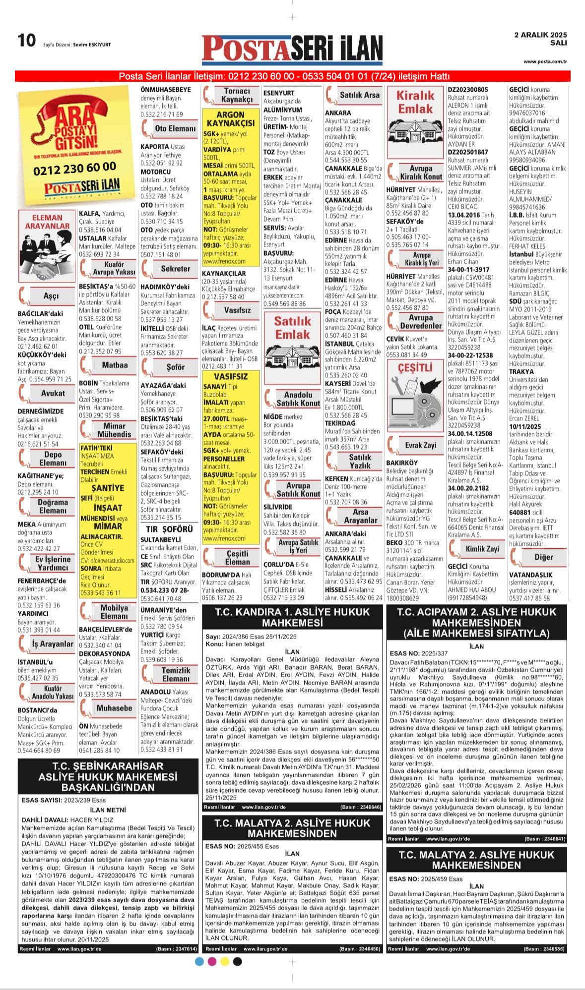 Posta Bugünkü İlanlar