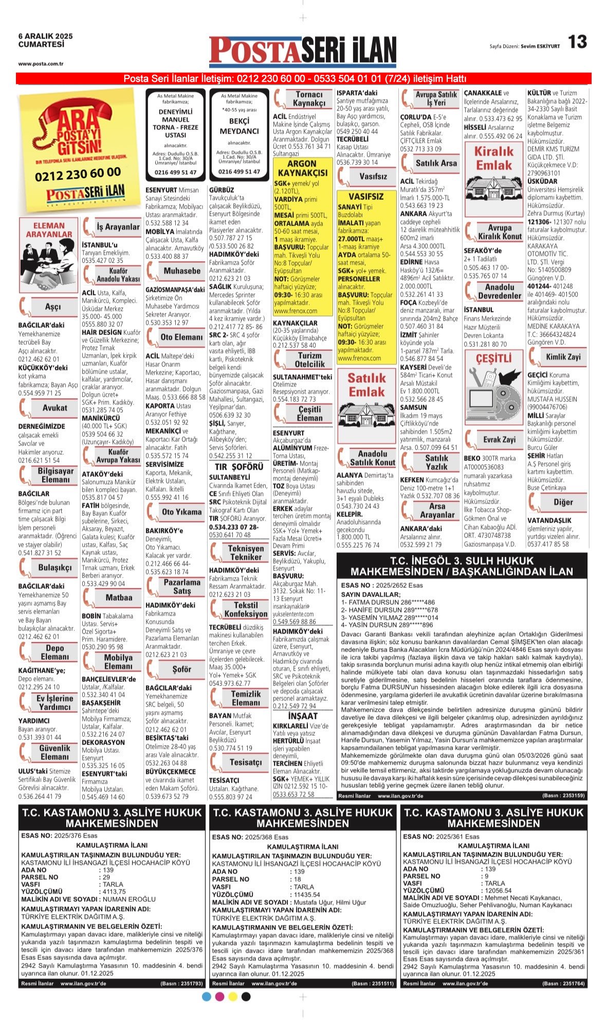 Posta Bugünkü İş İlanları, Posta Eleman, Posta Kayıp İlanı-6.12.2025