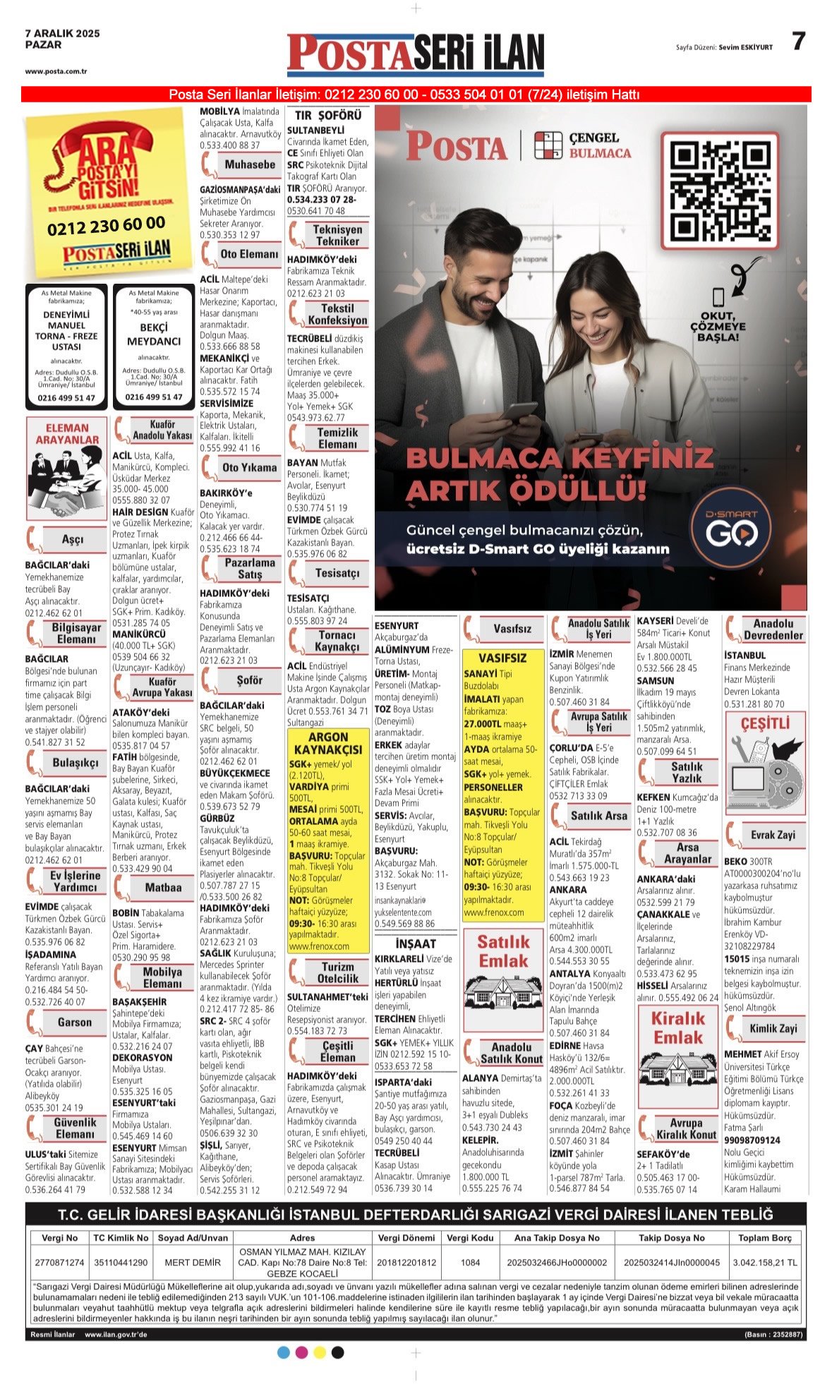 Posta Bugünkü İş İlanları, Posta Eleman, Posta Kayıp İlanı-7.12.2025