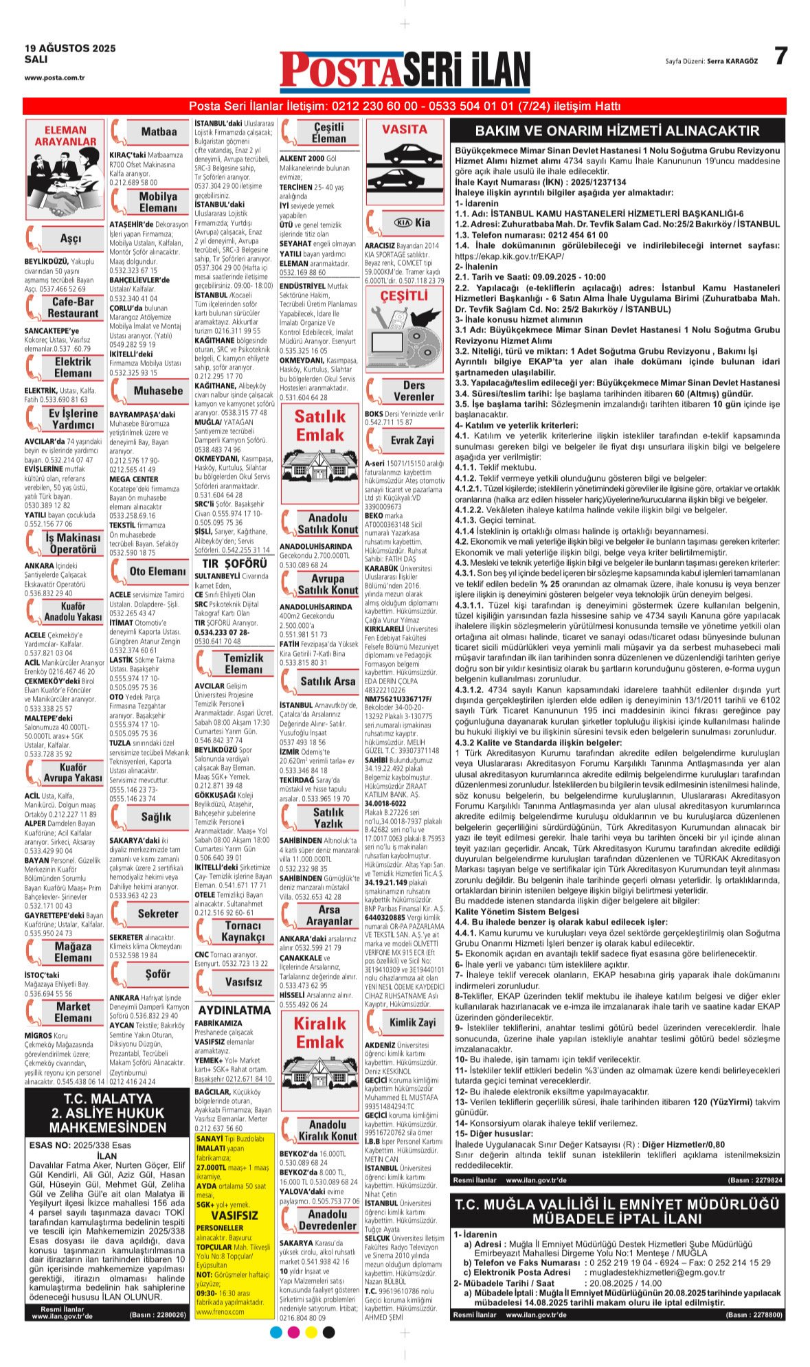 Posta Bugünkü Seri İlanlar- Eleman- Emlak- Vasıta- Kayıp İlan-19.8.2025