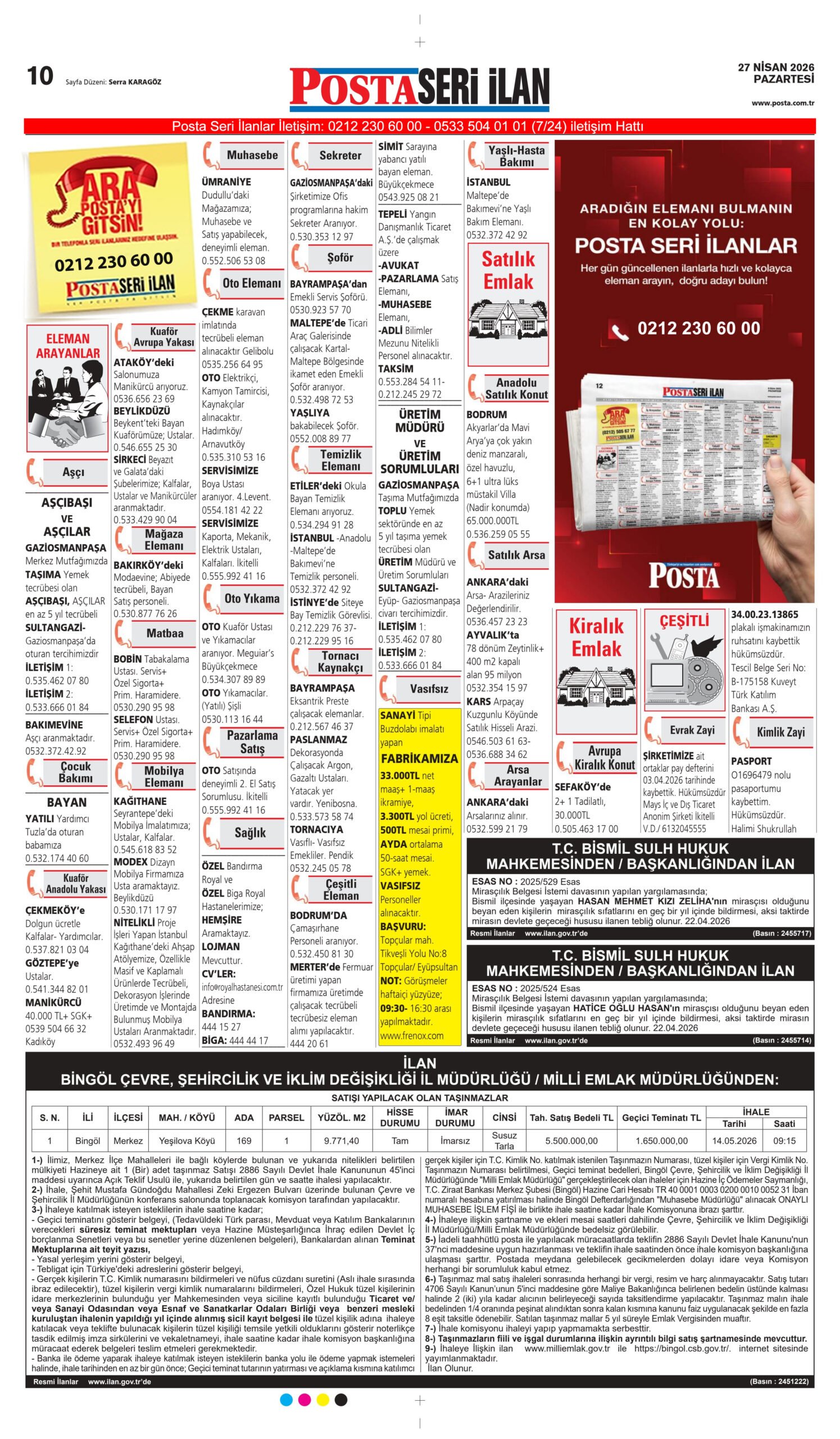 27 Nisan 2026 Posta Bugünkü İş İlanları, Posta Eleman, Posta Kayıp İlanı, Posta Seri İlanlar.