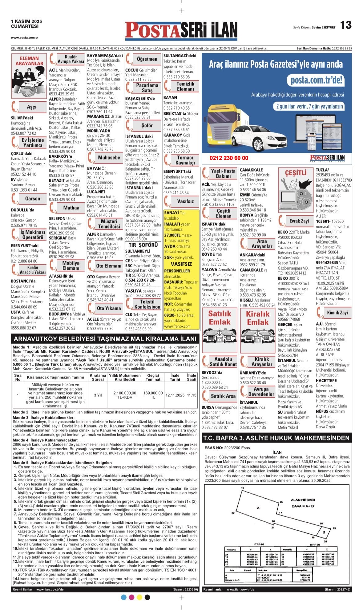 Posta Bugünkü İş İlanları, Posta Eleman, Posta Kayıp İlanı-23.10.2025