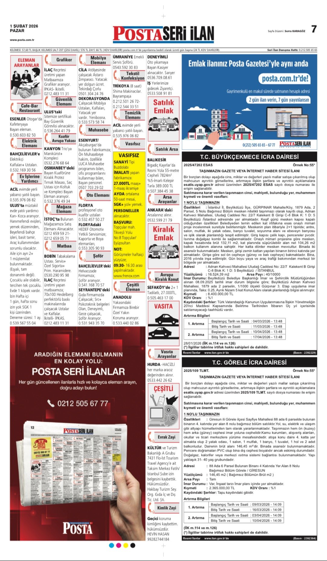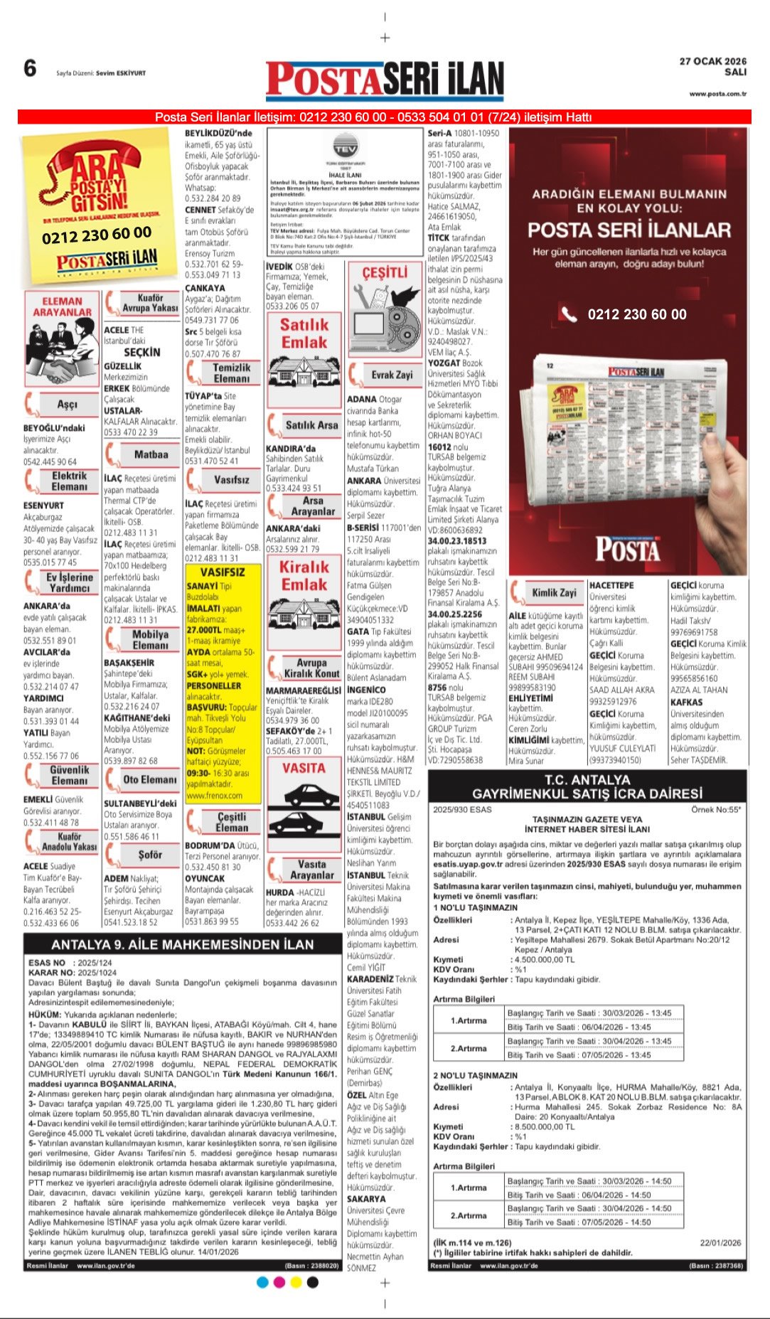 Posta Bugünkü İş İlanları, Posta Eleman, Posta Kayıp İlanı, Posta Seri İlanlar-1.2.2026