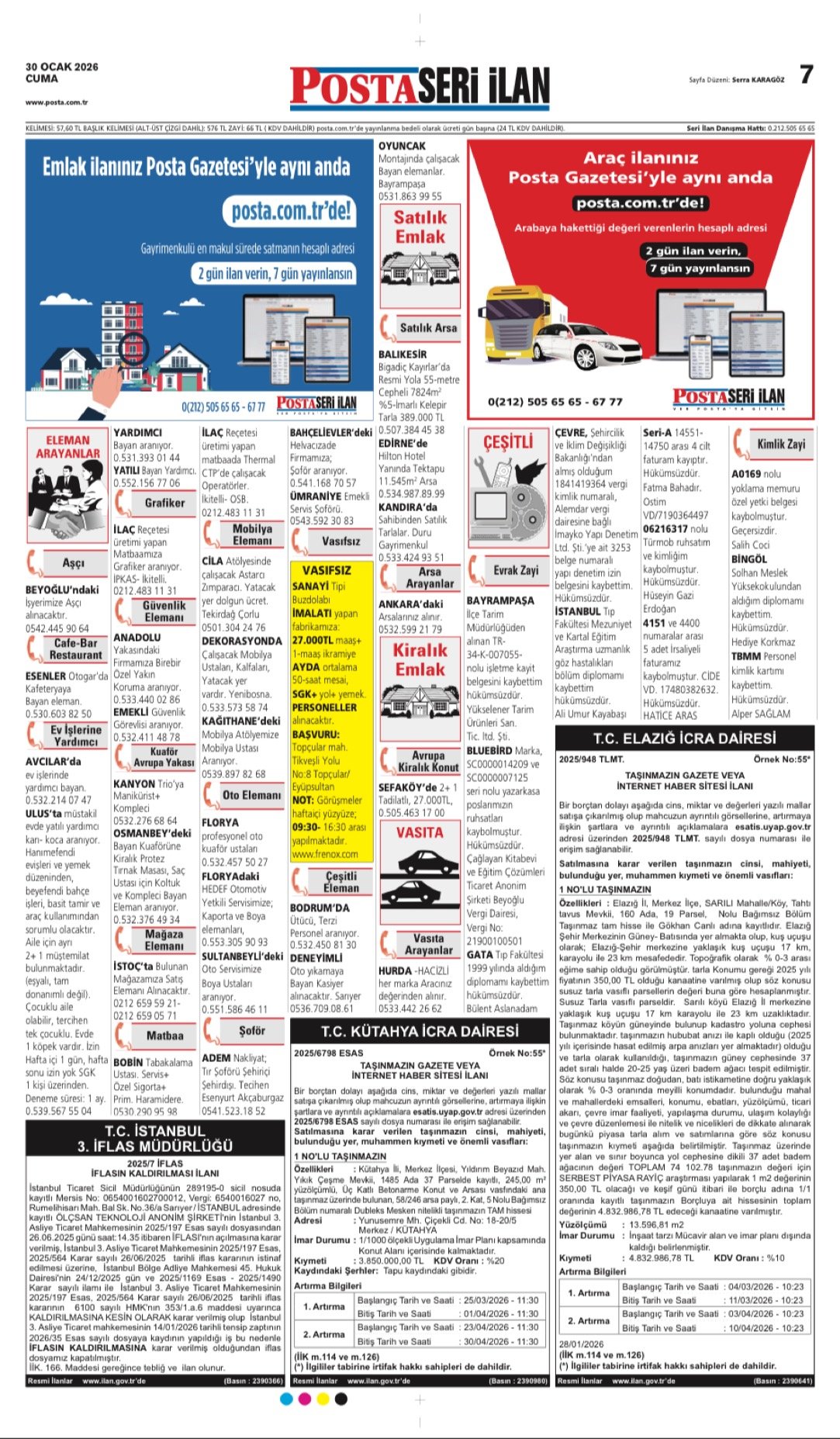 Posta Bugünkü İş İlanları, Posta Eleman, Posta Kayıp İlanı, Posta Seri İlanlar-30.1.2026
